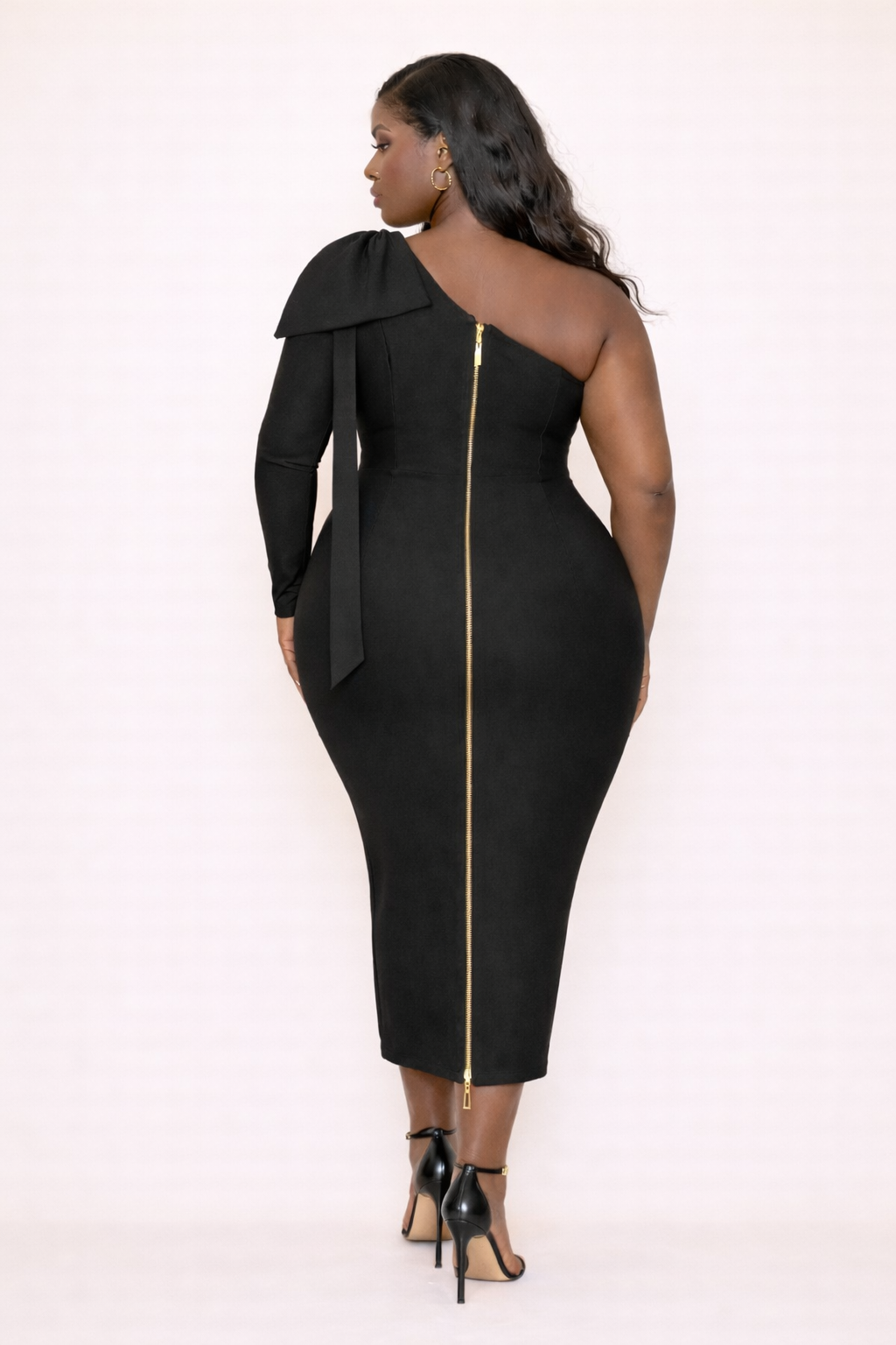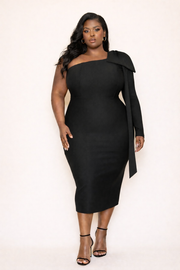 Sheba is designed to celebrate curves with intention. Crafted from a spandex-blend fabric, this dress hugs the body closely, contouring the waist, hips, and busts for a smooth, confident silhouette. The one-shoulder neckline adds modern edge while the sleek midi length keeps the look polished and powerful. Designed exclusively for plus-size figures, Sheba is made to fit and flatter, never conceal.