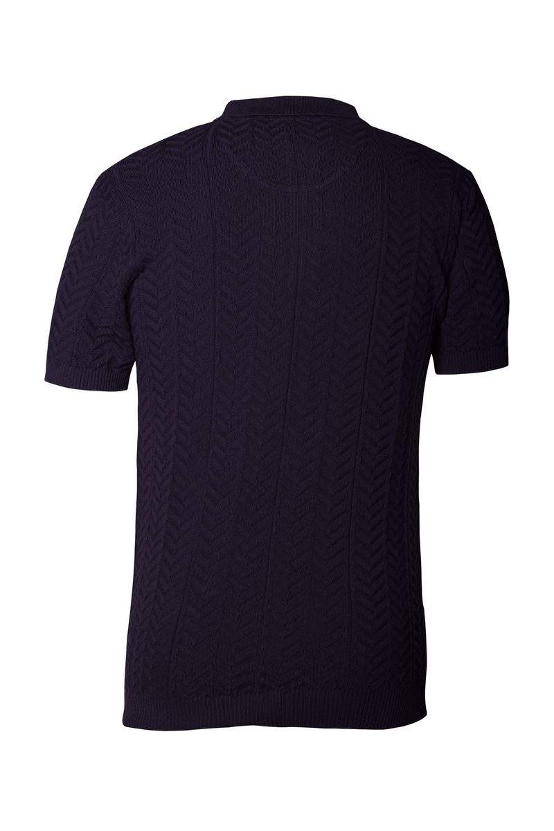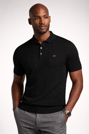 The Stillwater polo speaks without making a sound. Crafted in a rich, black knit with a subtle chevron texture, this piece is defined by restraint, precision, and presence. The tonal pattern adds depth on close inspection, while the structured collar and button placket keep the silhouette sharp and composed.